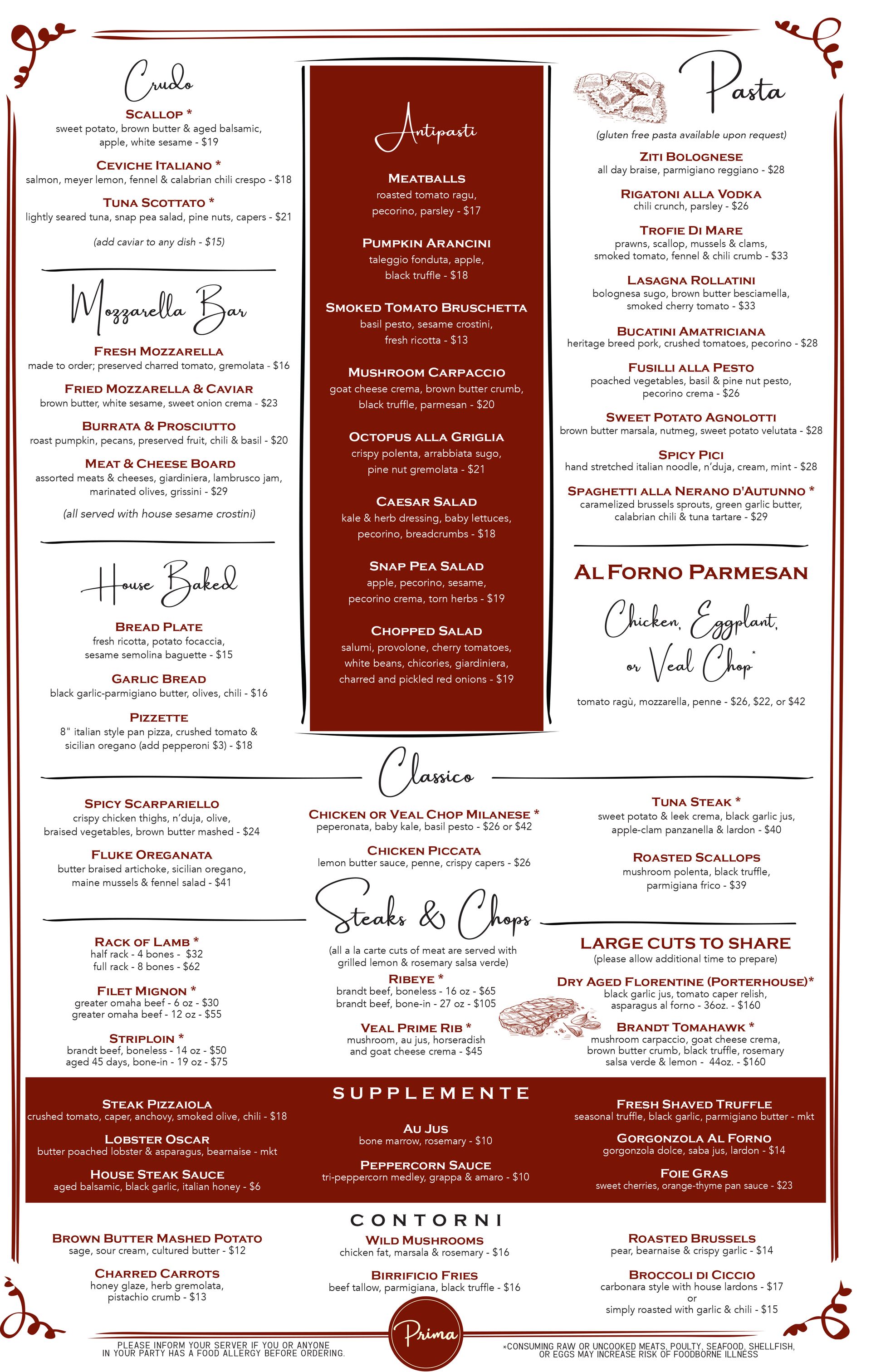 Mid Day Menu: 3 pm-4 pm