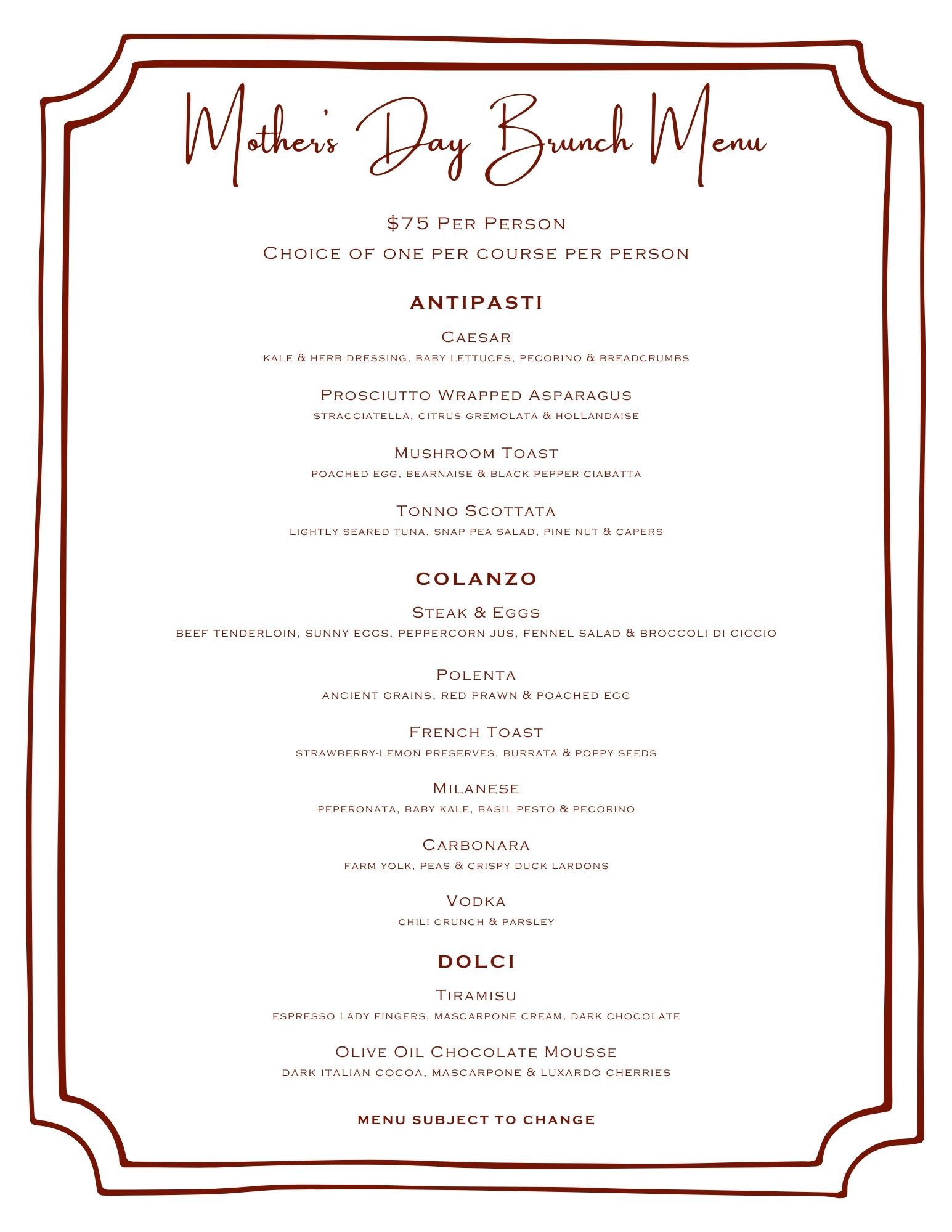 Prefix Menu $75 Per Person